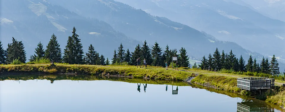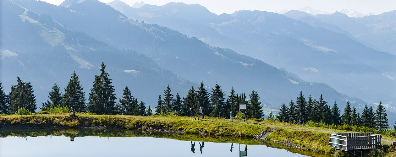 Ik begin mijn wandeling met de gondellift omhoog naar Hexenwasser in Söll. Het idyllische landschap rond de bron van de Hohe Salve opent zich voor mij meteen op de top. Vanaf hier volg ik wandelroute nr. 50, die me langs de Simonalm in de richting van de Buitenste en Binnenste Keatalmen voert.